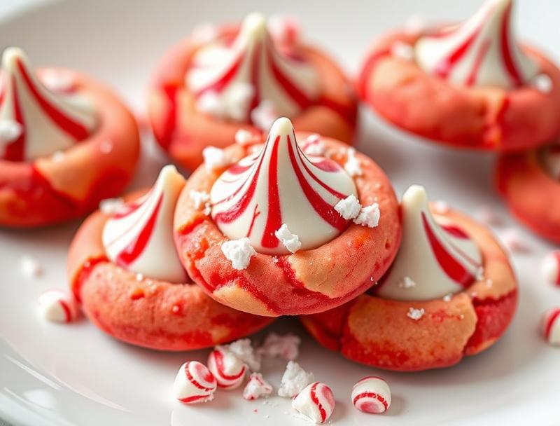 Festive Candy Cane Kiss Cookies with Peppermint Crunch