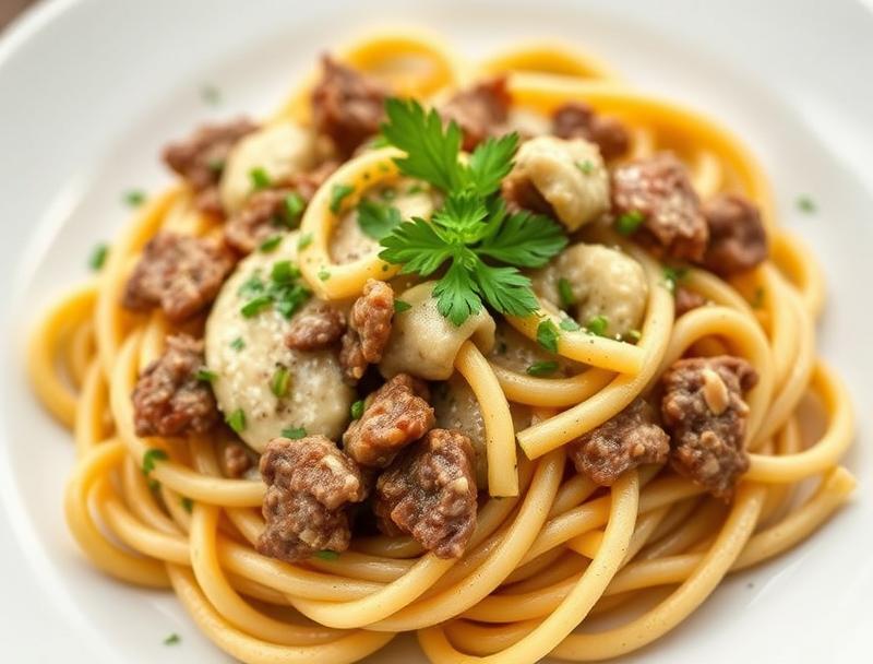 Creamy Beef Garlic Pasta