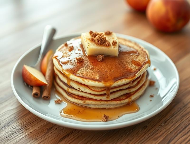Fluffy pancakes infused with the warmth of cinnamon and the sweetness of apples, perfect for a comforting breakfast.