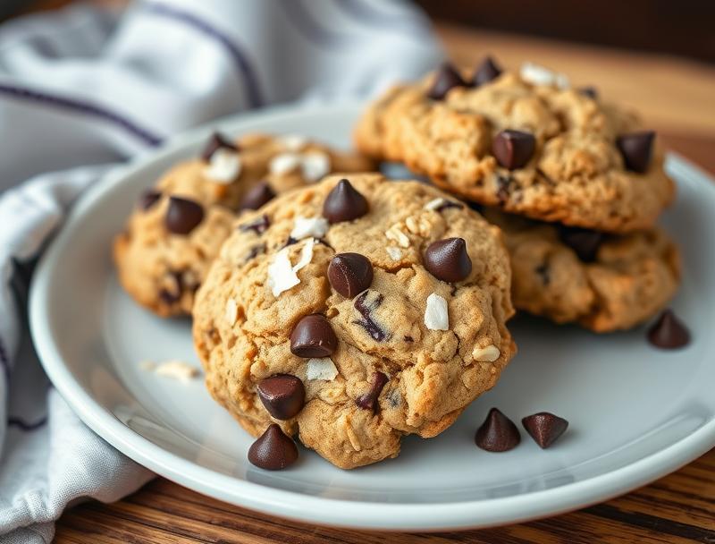 A classic cookie recipe combining oats, chocolate chips, and coconut for a delicious and textured treat.