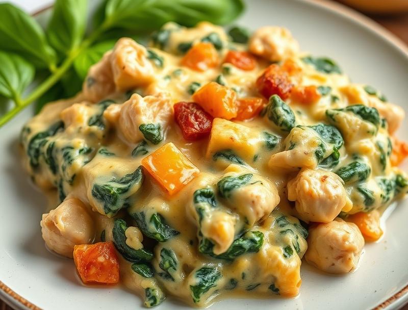 A delicious and easy-to-make creamy chicken spinach casserole perfect for weeknights or special occasions, featuring tender chicken, nutritious spinach, and a rich, creamy sauce.