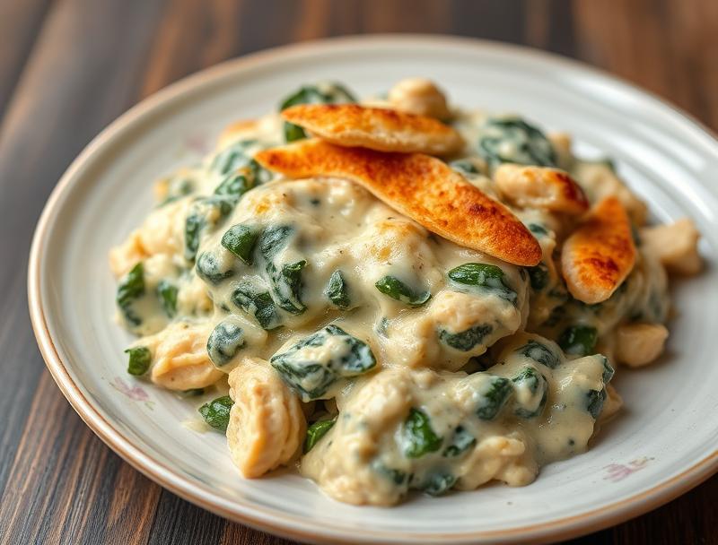 A delicious and easy creamy chicken spinach casserole recipe perfect for weeknights or special occasions.