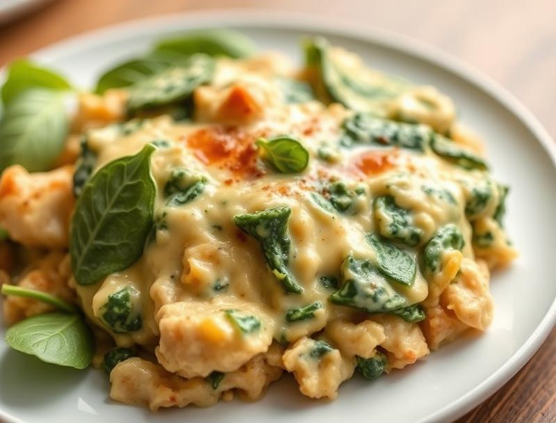 A hearty and flavorful casserole combining chicken, spinach, and cream, perfect for an easy and satisfying dinner.
