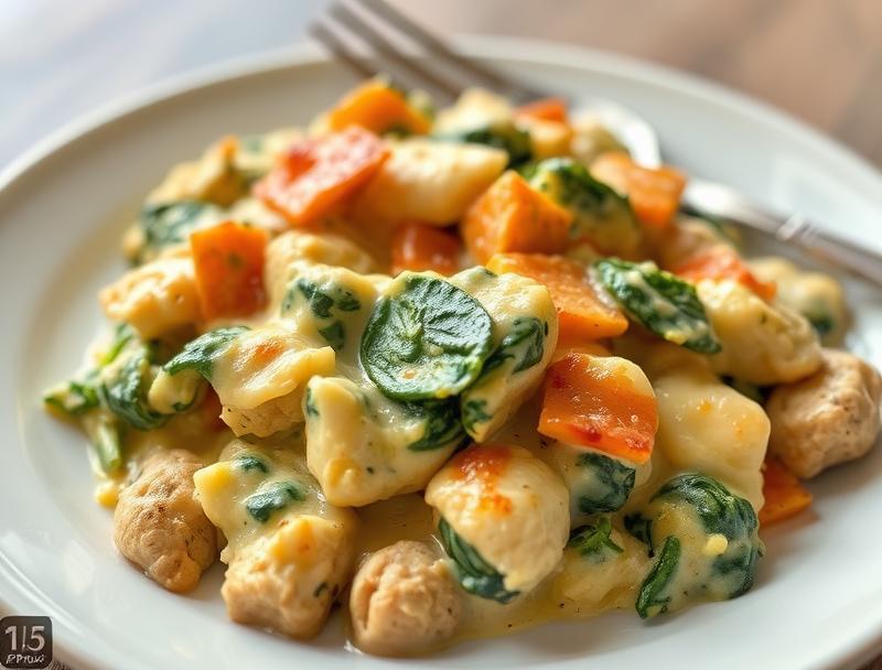 A comforting and flavorful casserole combining chicken, spinach, and cream, perfect for family dinners or special occasions.