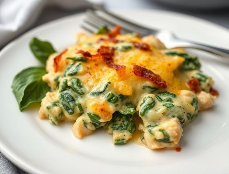 A comforting casserole combining chicken, spinach, and cream, perfect for easy dinners.
