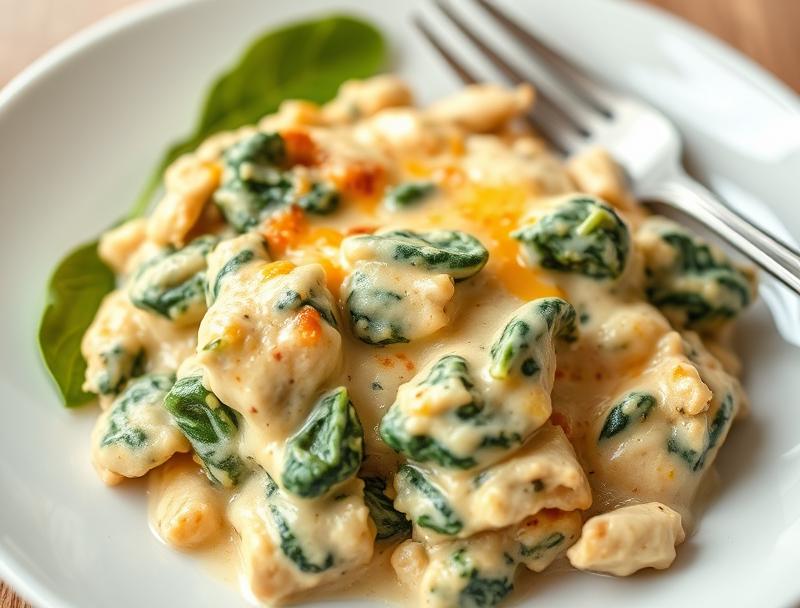 A comforting and delicious casserole made with chicken, spinach, and a creamy sauce, perfect for easy dinners.