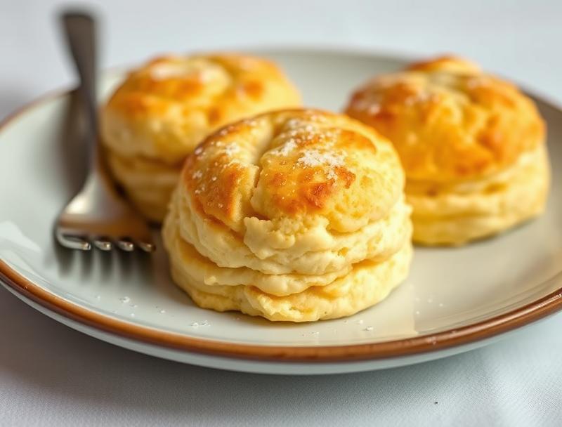 6. Step 6: Brushing with Egg Wash and Baking – Place the biscuits on a baking sheet lined with parchment paper, leaving about 1 inch of space between each biscuit. Brush the tops with beaten egg for a golden glaze. Bake in a preheated oven at 400°F (200°C) for about 15-20 minutes, or until the biscuits are golden brown.
