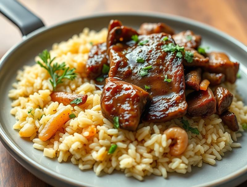 A flavorful and easy-to-make skillet recipe combining steak, rice, and honey garlic butter, perfect for a quick dinner or special occasion.