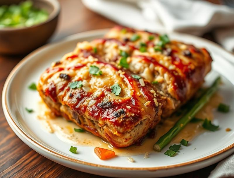 A juicy and flavorful chicken meatloaf infused with garlic and parmesan cheese, perfect for an easy weeknight dinner.