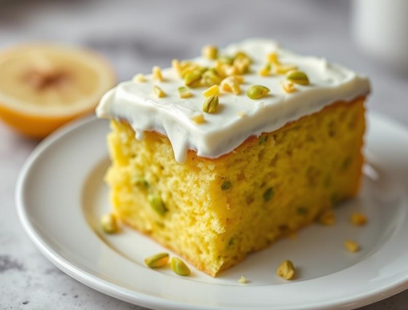 Moist Lemon Pistachio Cake with Cream Cheese Frosting