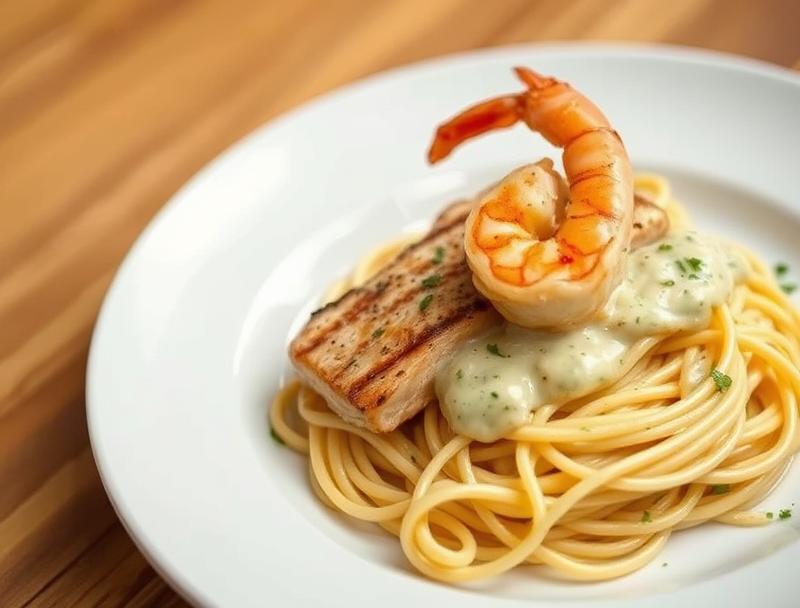 Grilled Salmon and Shrimp Fettuccine …