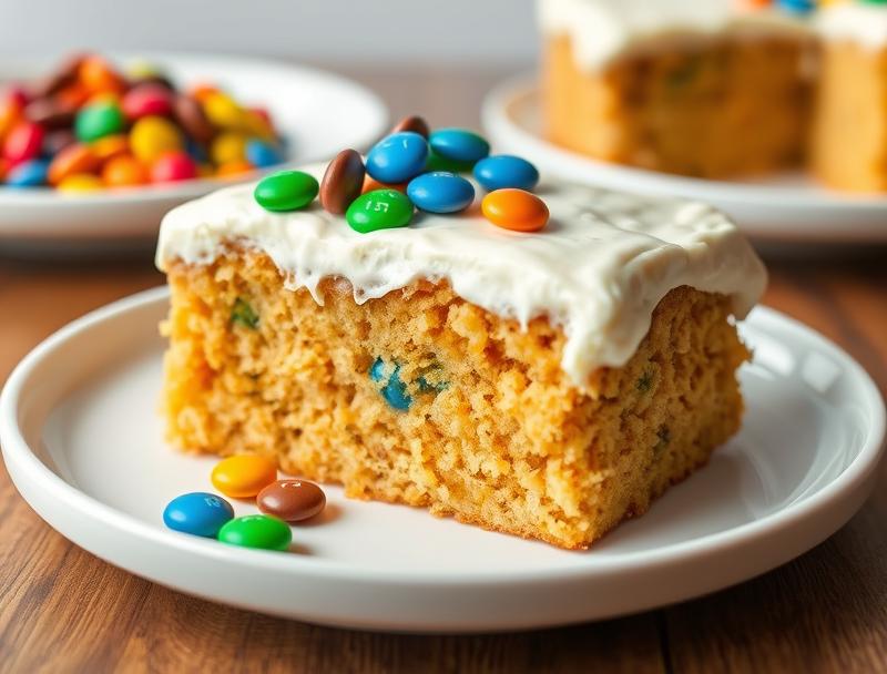 The M&M’s add a delightful crunch to the cake. To enhance this texture, press a few extra M&M’s into the top of the frosting after you’ve applied it, or sprinkle them over the cake immediately before serving.