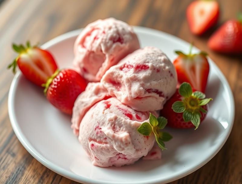 A simple and delicious no-churn strawberry ice cream recipe using sweetened condensed milk, heavy cream, and pureed strawberries.