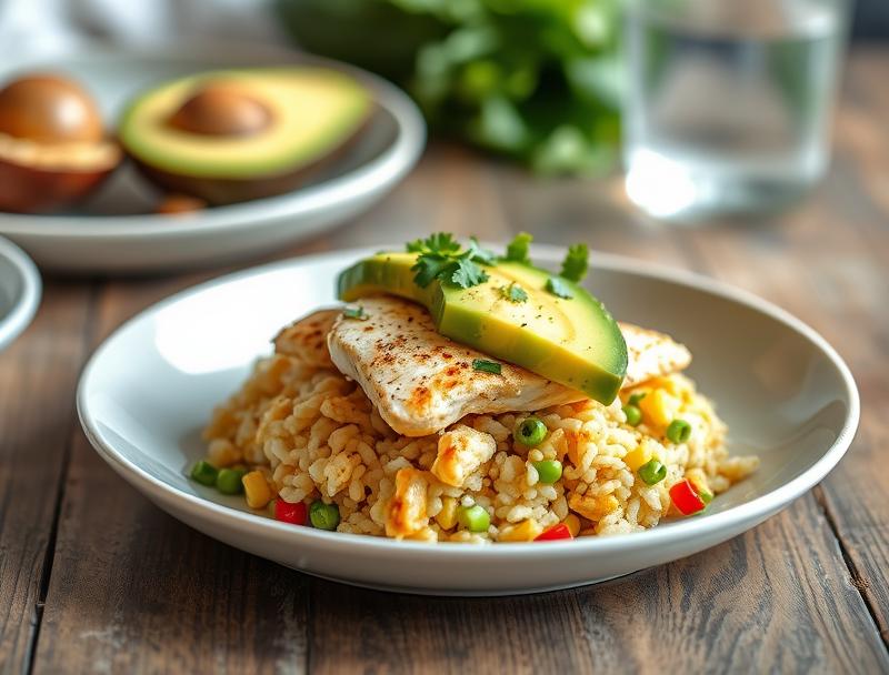 A flavorful and healthy recipe combining chicken, avocado, rice, and a zesty honey-lime sauce, perfect for dinner or meal prep.